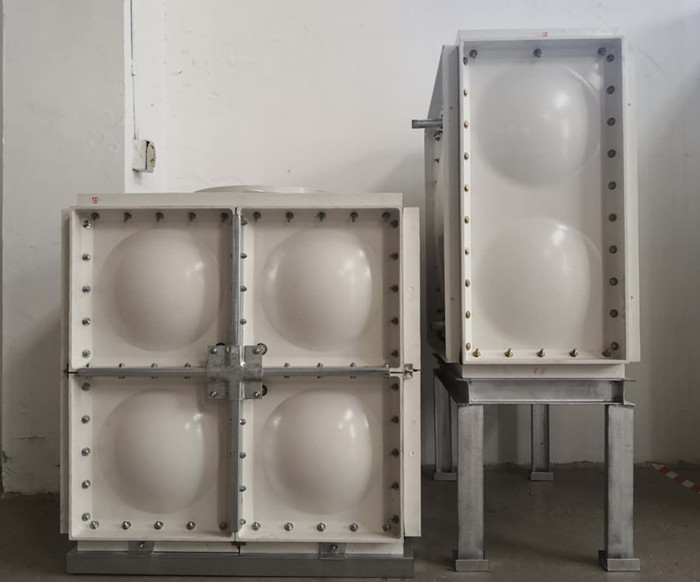 玻璃鋼水箱是由SMC模壓單板、密封材料、金屬結(jié)構(gòu)件及配管系統(tǒng)組合拼裝而成。可以根據(jù)用戶需要組裝1-1000立方的水箱。模壓單板是采用不飽和樹脂生產(chǎn)的SMC片材,經(jīng)高溫、高壓、機械壓制而成。在制造工藝上,采取機壓成型的制作方法。增加了抗震、抗沖擊的強度、克服了手糊制品強度不均勻的缺陷,提高了耐壓強度和使用壽命;在外型設(shè)計上,板塊中部呈凹陷弧度,提高了水箱的承壓能力,同時板塊四周沒有45度和90度的凸緣,組裝時不用邊角連接件,更具有柔韌性和靈活性,水箱密封是采用專業(yè)的定型產(chǎn)品-密封帶,該密封帶、耐水、彈性大、變形小,使用壽命長。
