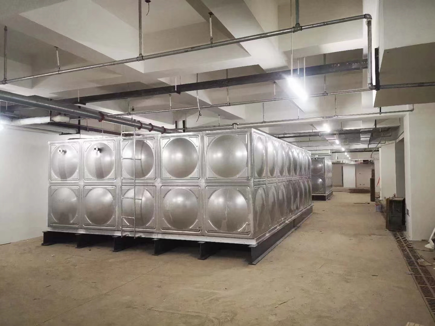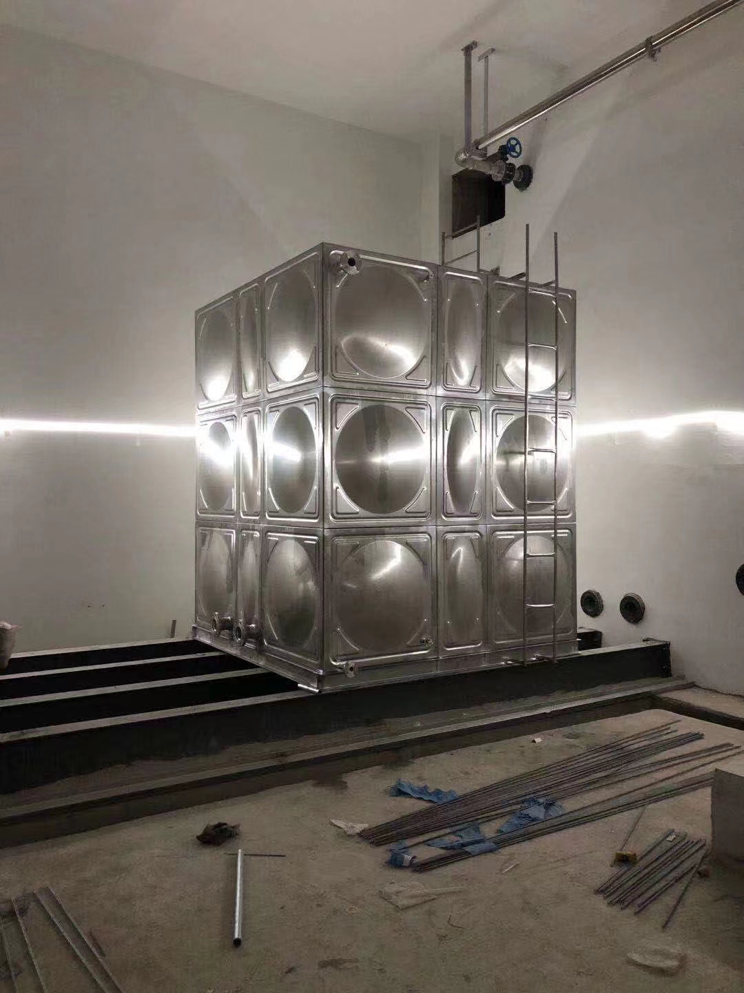 4,下面我放幾張現場圖片,有不銹鋼水箱安裝前照片和水箱基礎,水箱周圍空間標準,不銹鋼水箱安裝完的照片便于參考一下。